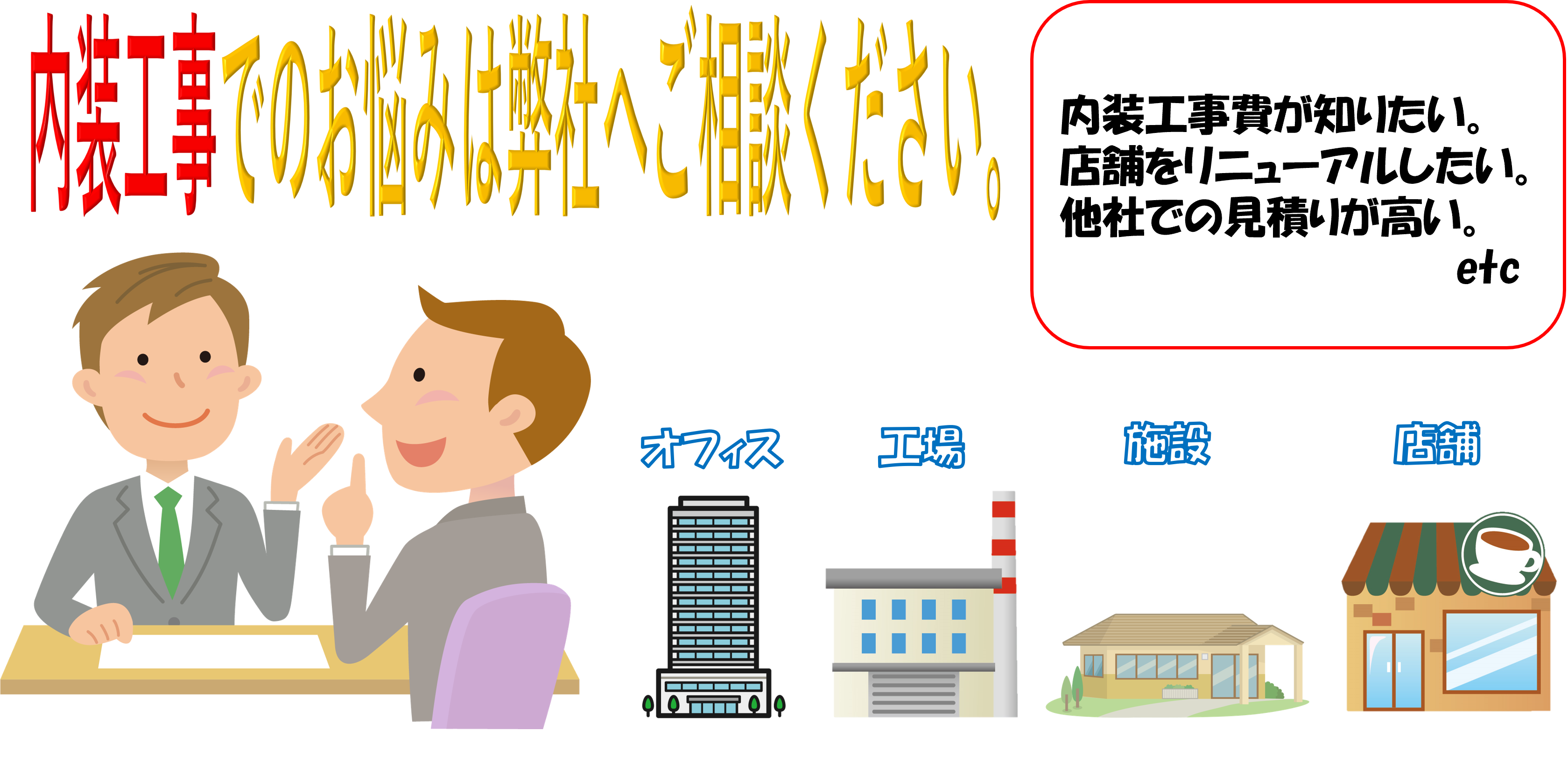 オーナー様、施主様がご依頼されている内装工事は、最終的に施工を行う業者まで行きつくまで何社も経由しているケースが少なくありません。 その度に中間マージンが発生しているため、オーナー様、施主様にとってはコストが膨らんでいってしまいます。 オーナー様、施主様から、実際の現場施工を行う当社へ、直接ご発注頂ければ中間マージンを省くことでコスト削減が図れます!